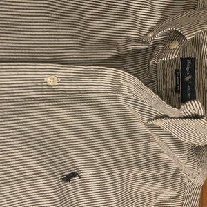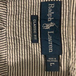 Large Men's Polo Seersucker Short Sleeve Striped Button Up. In perfect condition, like new. It has been worn once. Great pick-up for the summer. Only reason why I'm selling this item is because it is too big.