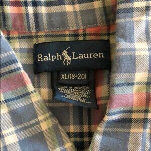 Classic and simple. The style, comfort and quality you expect from Polo. In excellent condition with no issues. 20.5" underarm to underarm and 29" L Tag reads 18-20. Fits a S.