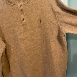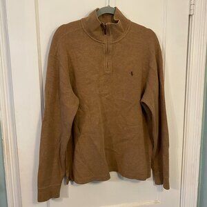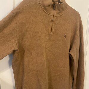 Classic style, tan quarter zip. Goes great with jeans and good for layering in winter months. Fits a full-sized build best.
