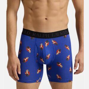 From the design house of Ralph Lauren, Polo presents the three set, men's Polo Bear boxer briefs. Designed for optimal comfort, these boxer briefs are made from a soft cotton blend with cooling and moisture-wicking properties. Four-way stretch allows for a supportive fit and ease of movement. Presented in a signature blue, Polo Ralph Lauren presentation box, new with retail tags. MSRP $59.50