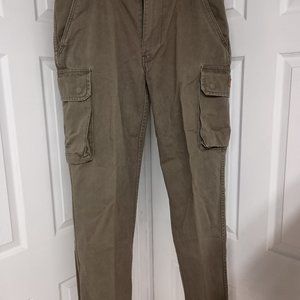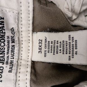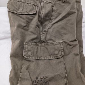 Really nice pair of Polo cargo pants. Olive green. No noticeable stains, rips, or blemishes. Tag says 34 (waist) 32 (length) but actual waist fits more like a 35-36.