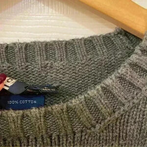 Polo Ralph Lauren 100% Cotton Dark Grey Sweater Navy Pony Size L. Fits like a M/L. Pit to pit 24.5 inches. Model is 5’11 205 lbs, 42.5in chest. Sweater is in good preowned condition, tag is slightly detached (shown)