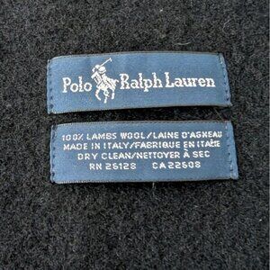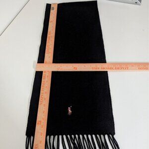Polo Ralph Lauren 100% Lambswool Scarf Black Polo Logo Preppy Academia Fringe