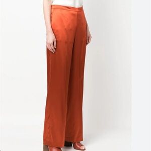 ochre orange mulberry silk high waist concealed side zip fastening side inset pocket rear welt pocket wide leg