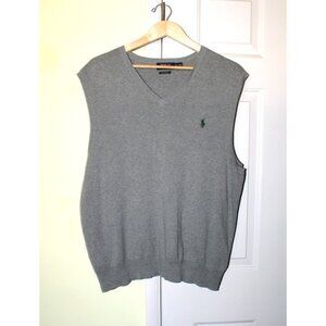 Polo Ralph Lauren 100% Pima Cotton Men Grey Vest V Neck Size XL Green Pony
