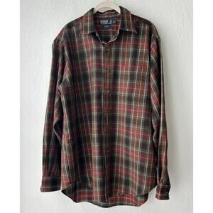 Polo Ralph Lauren 100% Wool Plaid Shirt Mens L Red Green Brown Glover Casual