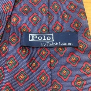 Polo Ralph Lauren 100% silk tie Handmade in USA Navy Red Diamond Pattern EUC 57"