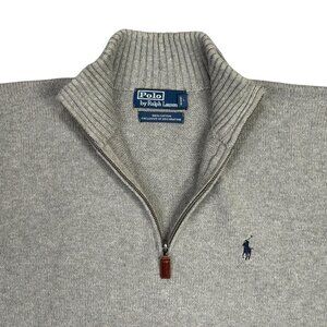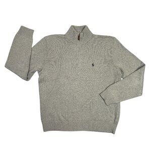 Polo Ralph Lauren 1/4 Quarter Zip Sweater Mens M Gray Pullover Mock Neck Cotton