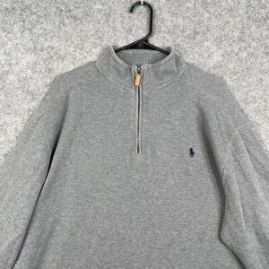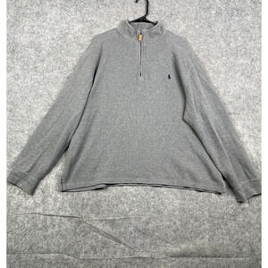 Polo Ralph Lauren 1/4 Zip Pullover Blue Pony Knit Stretch Sweater XL Gray Jumper