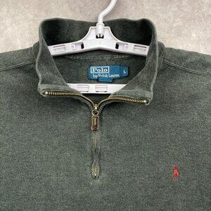 Polo Ralph Lauren 1/4 Zip Sweatshirt Mens Large Gray Preppy Casual Maroon Pony