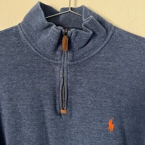Polo Ralph Lauren 1/4 Zip Up Navy Blue Sweater Pullover Orange Pony Size XL