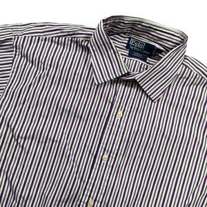 Polo Ralph Lauren 17 1/2 Classic Fit Curham Long Sleeve Purple Strip Dress Shirt