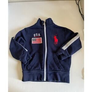 Polo Ralph Lauren 2T Toddler Zip Up Sweatshirt Jacket Large Pony Logo USA Preppy