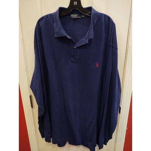Polo Ralph Lauren 2XLT Mens Long Sleeve Polo Shirt Blue Pique Pony Golf