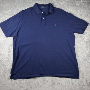 Polo Ralph Lauren 3XB Big Navy Blue Polo Shirt Red Pony Cotton Knit