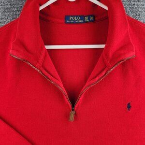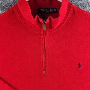 Polo Ralph Lauren 3XLT Red Long Sleeve 1/4 Zip Sweater Blue Pony 100% Cotton Men