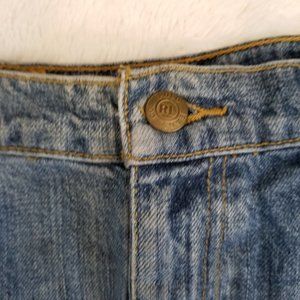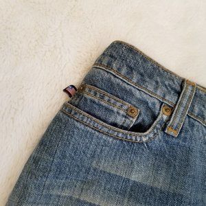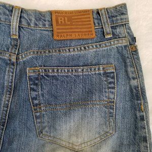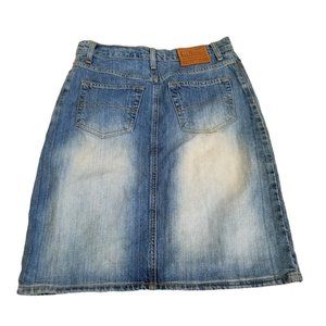 Polo Ralph Lauren 4 Denim Below Knee Midi Skirt Cotton Medium Wash Leather Patch