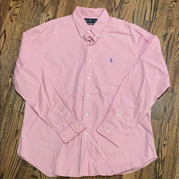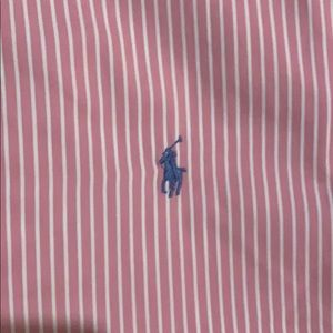 Pink and white pinstriped Polo Ralph Lauren button down. Size XL. Button down collar. Never worn