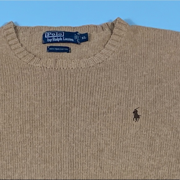 Polo Ralph Lauren sweater, says xxl but is shrunk down to fit like a medium, slight wear n tear