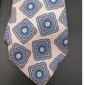 Designs/Colors: Navy/gold regimental stripes with crest shields; light gray with blue/green/magenta stripes; tan/blue with red/green/white stripes; red with repeating polo player motif; yellow with navy/red/white regimental stripes; light pink with blue geometric medallions -- Marked Irregular on the back (photographed)