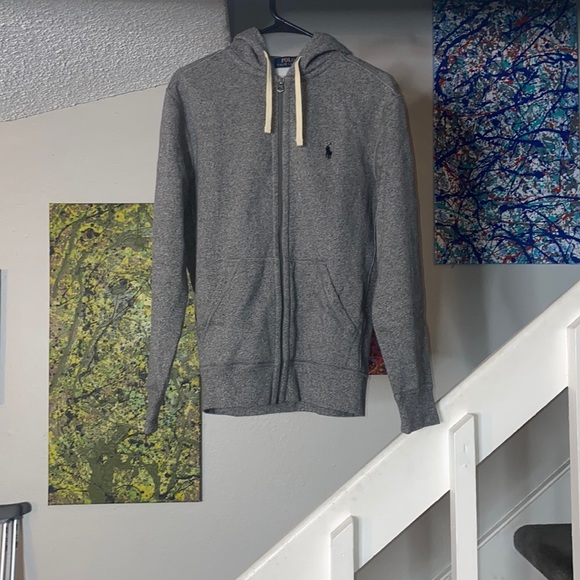 New Gray Polo Ralph Lauren Drawstring Hood with full-zip front and a signature zip pull