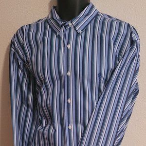 My ten-year-old but still Like New Ralph Lauren, Classic Polo Fit Multicolored Shirt relaxed version that is finished with the signature Blue Pony