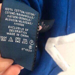 Blue polo shirt from the Ralph Lauren brand with embroidered badges on the tricolor collar inside 100% cotton machine washable USA size 6 / S new condition