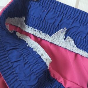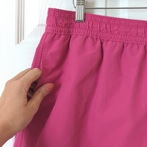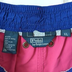 VTG and straight out of the 90s - These swim trunks feature an elastic waistband, a short length, open pockets on both hips, a hidden pocket near the front waist, and a velcro pocket on the back right. They are hot pink with the Polo logo embroidered near the front left leg's hem in navy. They're lightweight and comfortable with a relaxed fit. Super simple, classic, and retro! Perfect for Spring and Summer, warm weather, and vacation! High quality!