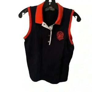 Polo Ralph Lauren Active Sleeveless Snap Front Polo Shirt Navy & Orange Size S