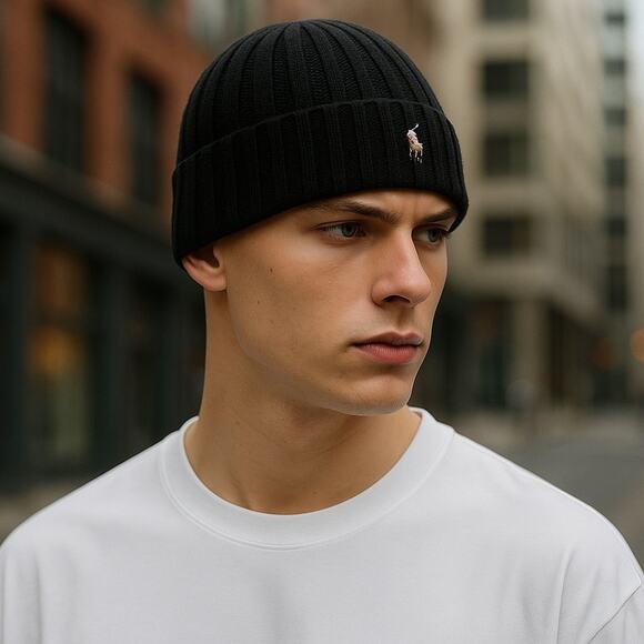 Polo Ralph Lauren Beanie Merino Wool Blend Horse Logo