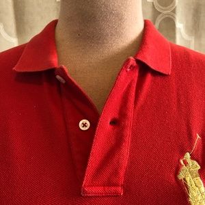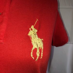 Skinny Fit cotton mesh pique features the signature embroidered Big Pony. Pony embroidery is a bright Gold color.