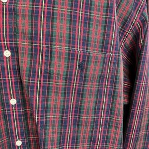 Polo Ralph Lauren Big Shirt Men's L Red Tartan Plaid Button Down Vintage Cotton