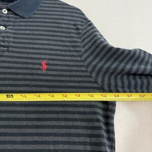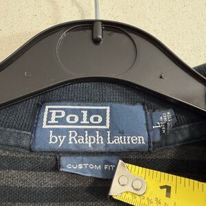 Polo Ralph Lauren Black Grey Stripe Long Sleeve Polo Shirt Men Large Custom Fit