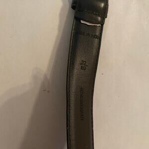 Classic Polo Ralph Lauren leather belt in black with a polished silver-tone buckle. Marked size 32, made in India. Timeless design that pairs well with dress pants, jeans, or business casual looks. Stamped Polo logo on the buckle and embossed logo near the keeper. Excellent versatile piece from Ralph Lauren. Good preowned condition with light wear.