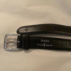 Polo Ralph Lauren, Ralph Lauren belt, black leather belt, silver buckle, size 32 belt, classic style, preppy fashion, business casual, Y2K designer, timeless accessory