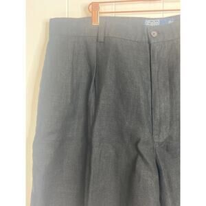 Polo Ralph Lauren Black Pleated 100% Linen Men's Bermuda Tyler Shorts Size 38