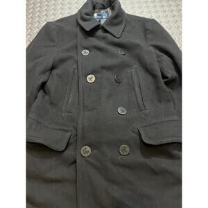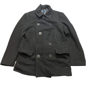 Polo Ralph Lauren Black Wool Nautical US Navy Peacoat Jacket Medium Vintage