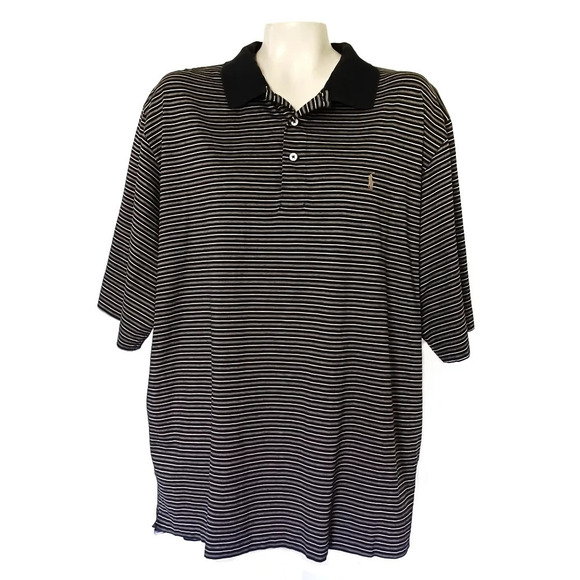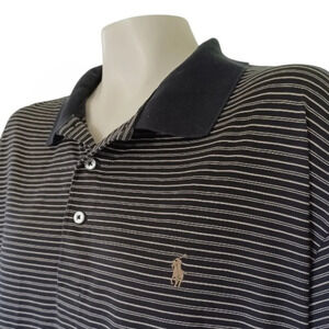 Polo Ralph Lauren Black and Tan Striped Polo Preppy Golf Casual