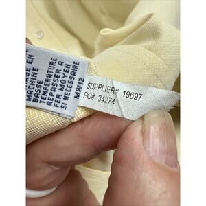 This Polo Ralph Lauren Blake Cotton Button Up Shirt in Mens Size XXL is a classic and stylish addition to any wardrobe. With its solid yellow color and short sleeves, this shirt is perfect for casual, business, or travel occasions. Made from high-quality cotton fabric with a woven texture, it features a collared neckline with a button-down style. The embroidered accents and vintage appeal add a touch of preppy charm to the overall look, making it a versatile and timeless piece for the summer, fall, and spring seasons.