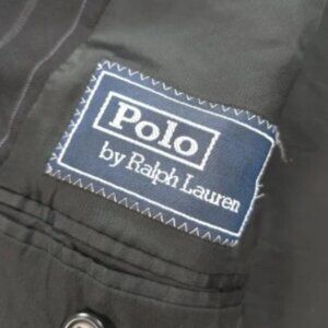 Polo Ralph Lauren Blazer Mens 42 Black Striped Wool Suit Jacket Italy Vintage