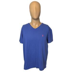 Polo Ralph Lauren Blue Cotton V Neck T-Shirt Embroidered Logo Men's Size Large