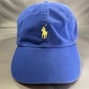 Polo Ralph Lauren Blue Hat Yellow Pony Logo Adjustable Dad Cap Cotton
