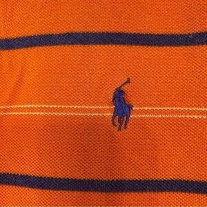 Polo Ralph Lauren Blue Label Orange Blue Stripe 100% Cotton Polo Size Large