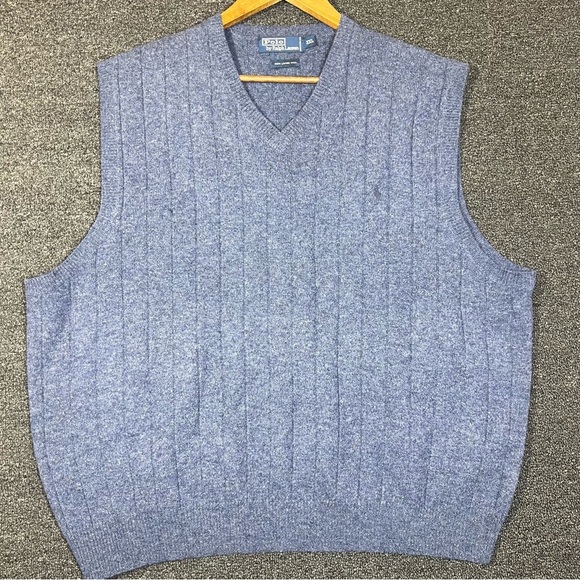 Polo Ralph Lauren Blue Lmbs Wool V-Neck Sweater Vest, Men’s XXL