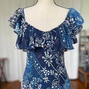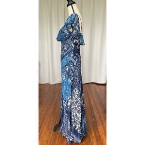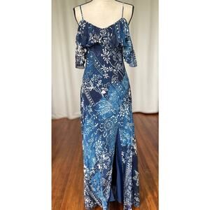 Polo Ralph Lauren Blue Maxi Ruffle Dress Size 2 Floral Print Special Occasion
