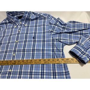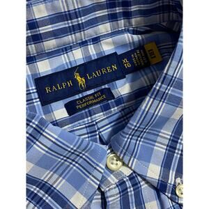 Polo Ralph Lauren Blue Plaid Nylon Blend Shirt Size XL Long Sleeve Performance