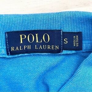 Classic Polo Shirt by Polo Ralph Lauren, featuring a collared neckline with two buttons front, short sleeves, slits a hem sides, classic fit. Color: blue.
