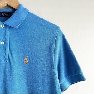 Polo Ralph Lauren Blue Polo Shirt with Orange Embroidered Pony Logo, Size Small