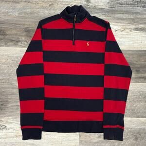 Polo Ralph Lauren Blue Red Striped Boys XL (18-20) Quarter Zip Mock Neck Pullover Sweater EUC