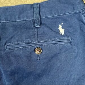 Polo Ralph Lauren Blue Relaxed Fit Flat Front Cotton Shorts Back Logo Men's 34